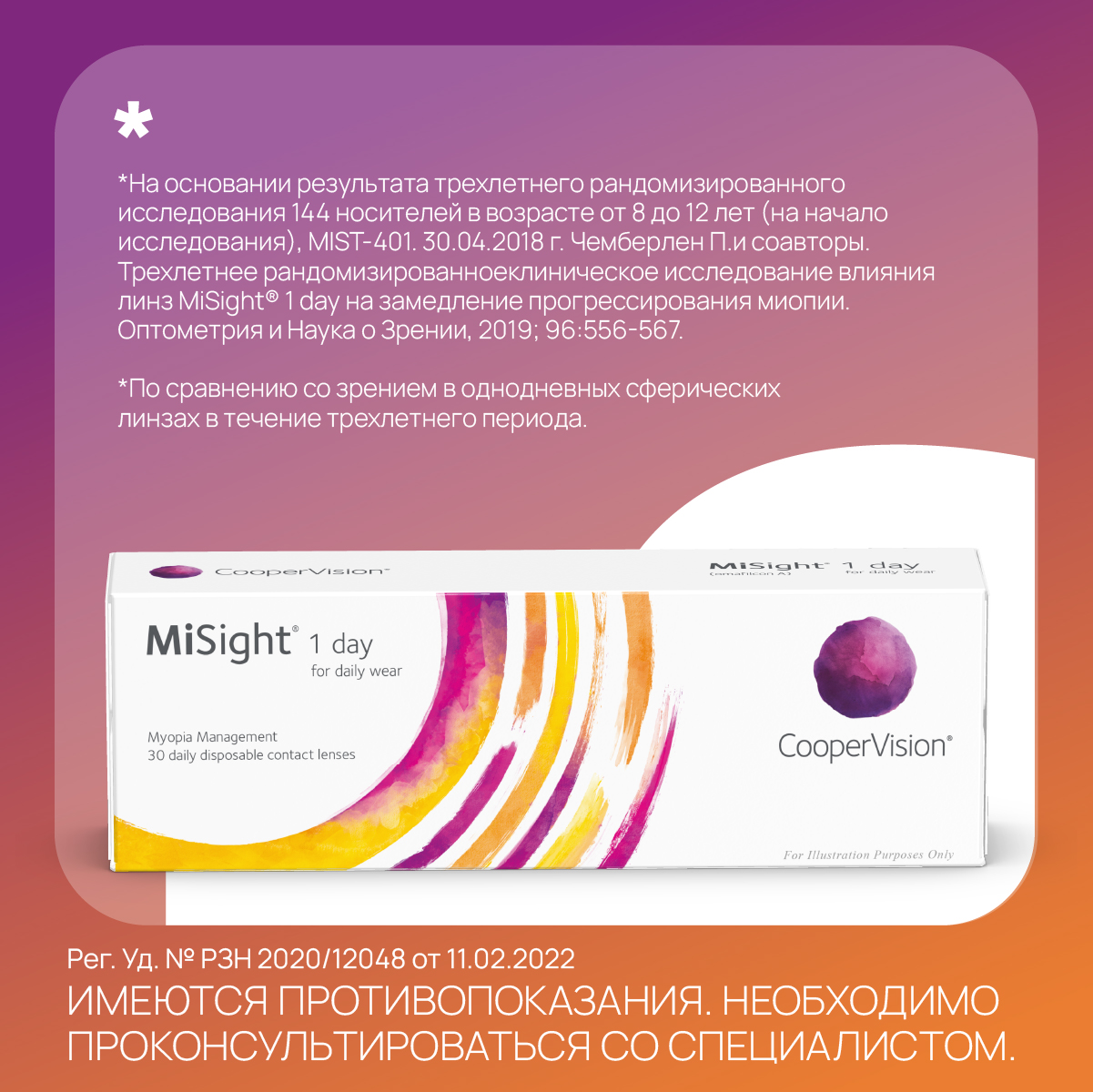 К счастью, ваш ребенок может воспользоваться инновационными технологиями, которые помогут замедлить прогрессирование близорукости: контактные линзы MiSight 1 day от компании CooperVision. Контактные линзы MiSight 1 day с технологией ActivControl не только корректируют близорукость. Это также первые мягкие контактные линзы с доказанной эффективностью, значительно уменьшающие прогрессирование близорукости у детей. Если ваш ребенок носит контактные линзы MiSight, он получает четкое зрение, свободу от очков и может наслаждаться любимыми занятиями.