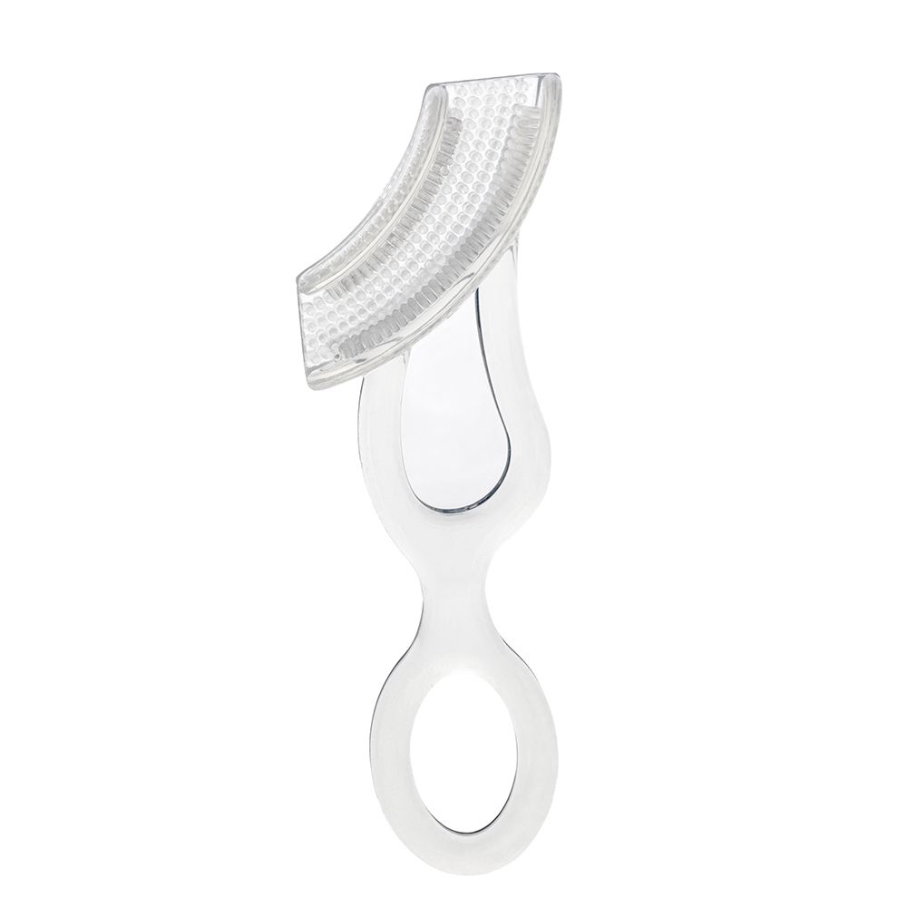 - Анатомически изогнутая форма, идеально повторяет линию десен, что позволяет лучше очищать зубки, не травмируя полость рта