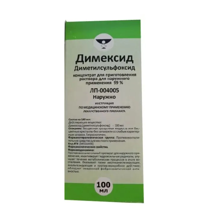 Активные вещества:диметилсульфоксид 99 г.