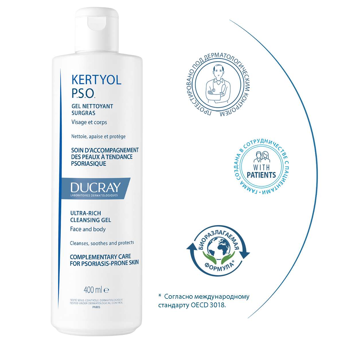 Ducray КЕРТИОЛЬ P.S.O. Cверхпитательный очищающий гель 400мл