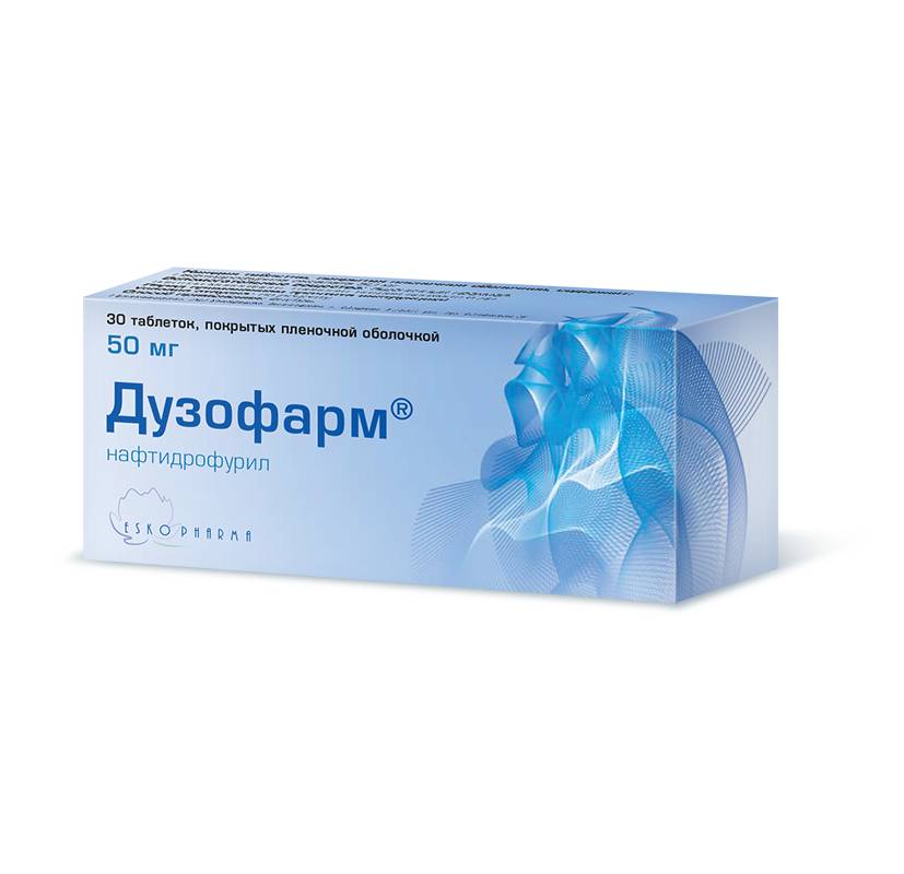 Дузофарм - препарат, улучшающий мозговое и периферическое кровообращение. Оказывает сосудорасширяющее действие. Снижает ОПСС и увеличивает минутный объем сердца, не оказывая при этом существенного влияния на ЧСС и АД. Вазодилатирующий эффект Дузофарма является результатом его прямого миотропного действия, антагонистического по отношению к серотониновым 5НТ2-рецепторам и альфа-адреноблокирующего действия.