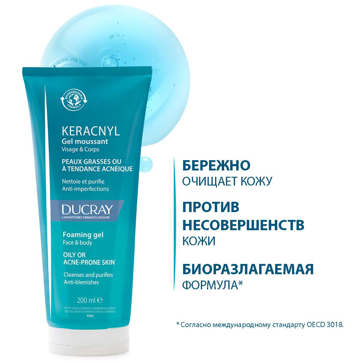 Дюкрэ (Ducray) Керакнил Очищающий пенящийся гель для кожи склонной к акне 200 мл