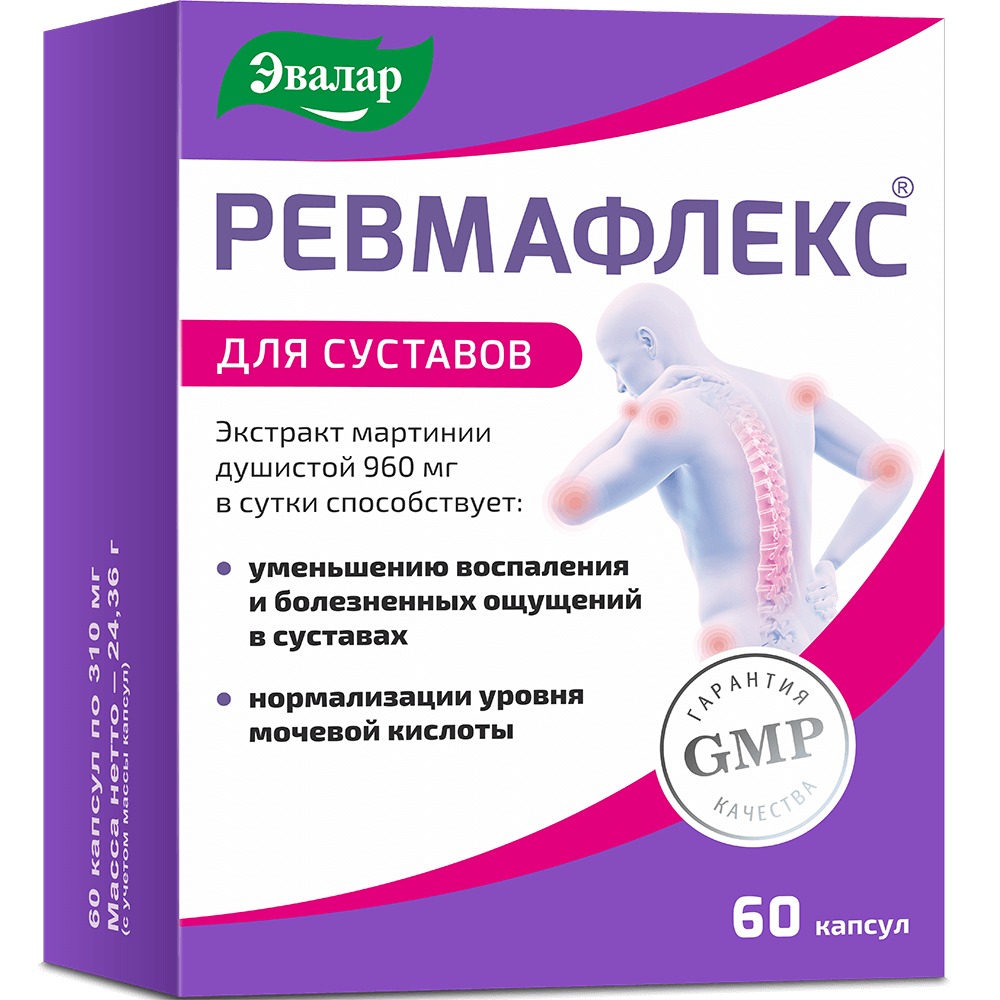 Ревмафлекс – растительный препарат на основе мартинии душистой для здоровья суставов, который снимает воспаление и боль, оказывает хондропротекторное действие, при этом не влияет на слизистую желудка.