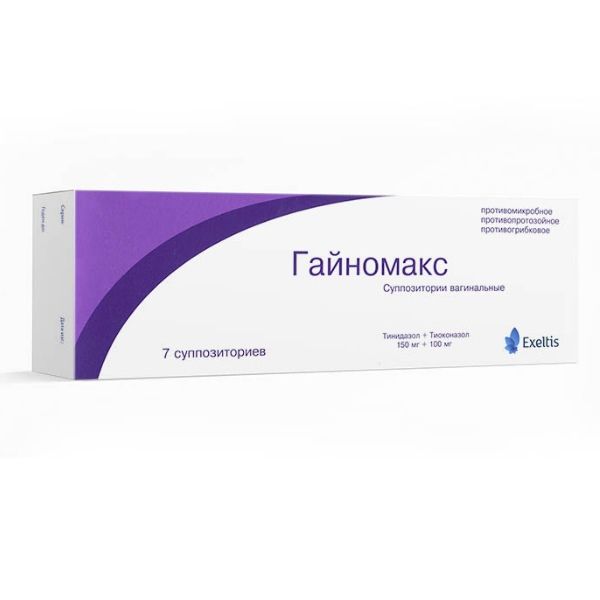 Препарат Гайномакс представляет собой комбинацию тиоконазола и тинидазола. Тиоконазол - синтетическое противогрибковое средство с высокой активностью в отношении дрожжеподобных и других грибов (дерматофиты). Он эффективен и в отношении бактериальных возбудителей: Gardnerella vaginalis, Bacteroides spp., некоторых грамположительных бактерий (вкл. Staphylococcus и Sreptococcus spp.).