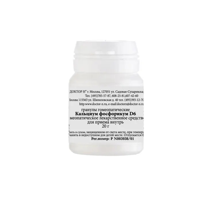 - Кальциум Фосфорикум D6 Гомеопатический монокомпонентный препарат гранулы гомеопатические 20г