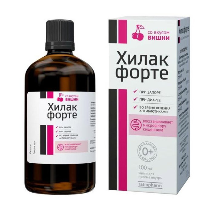 Естественная физиологическая микрофлора кишечника может быть значительно нарушена путем таких внешних воздействий, как терапия антибиотиками, облучение, операции на желудке, а также вследствие неподходящего и непривычного питания, изменения воды, смены климата и других условий. Хилак форте регулирует равновесие кишечной микрофлоры и нормализует ее состав. Благодаря содержанию в составе препарата продуктов обмена нормальной микрофлоры, Хилак форте способствует восстановлению нормальной микрофлоры кишечника биологическим путем и позволяет сохранить физиологические и биологические функции слизистой оболочки кишечника. Входящая в состав препарата биосинтетическая молочная кислота и ее буферные соли восстанавливают нормальное значение кислотности в ЖКТ, независимо от того повышенная или пониженная кислотность у пациента. На фоне ускорения развития нормальных симбионтов кишечника под действием препарата Хилак форте нормализуется естественный синтез витаминов группы B и K. Содержащиеся в Хилак форте короткоцепочечные летучие жирные кислоты обеспечивают восстановление поврежденной микрофлоры кишечника при инфекционных заболеваниях ЖКТ, стимулируют регенерацию эпителиальных клеток кишечной стенки, восстанавливают нарушенный водно-электролитный баланс в просвете кишки. Имеются данные о том, что Хилак форте усиливает защитные функции организма благодаря стимуляции иммунного ответа. При применении Хилака форте отмечается ускорение выведения сальмонелл у грудных детей после сальмонеллезного энтерита, что обусловлено стимуляцией роста ацидофильной анаэробной флоры и ее последующим антагонистическим воздействием на сальмонеллы.Применение