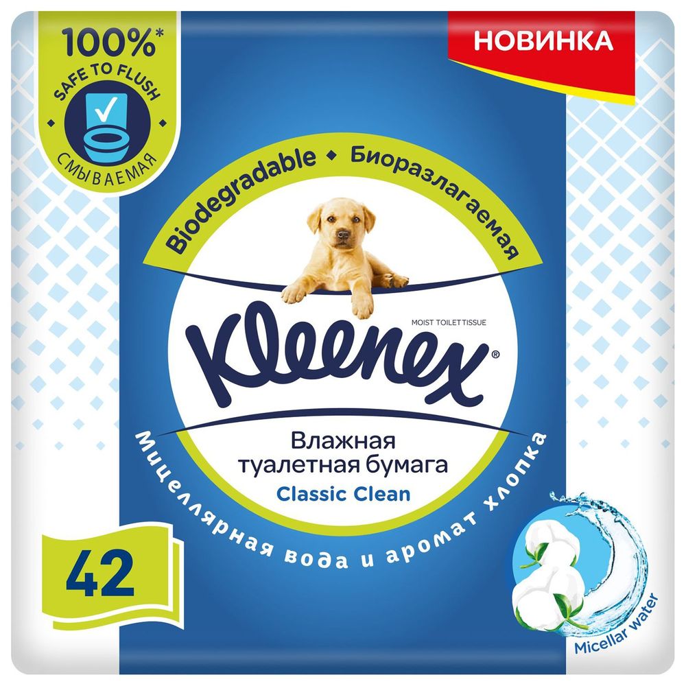 - Kleenex Влажная туалетная бумага Classic Clean 42шт