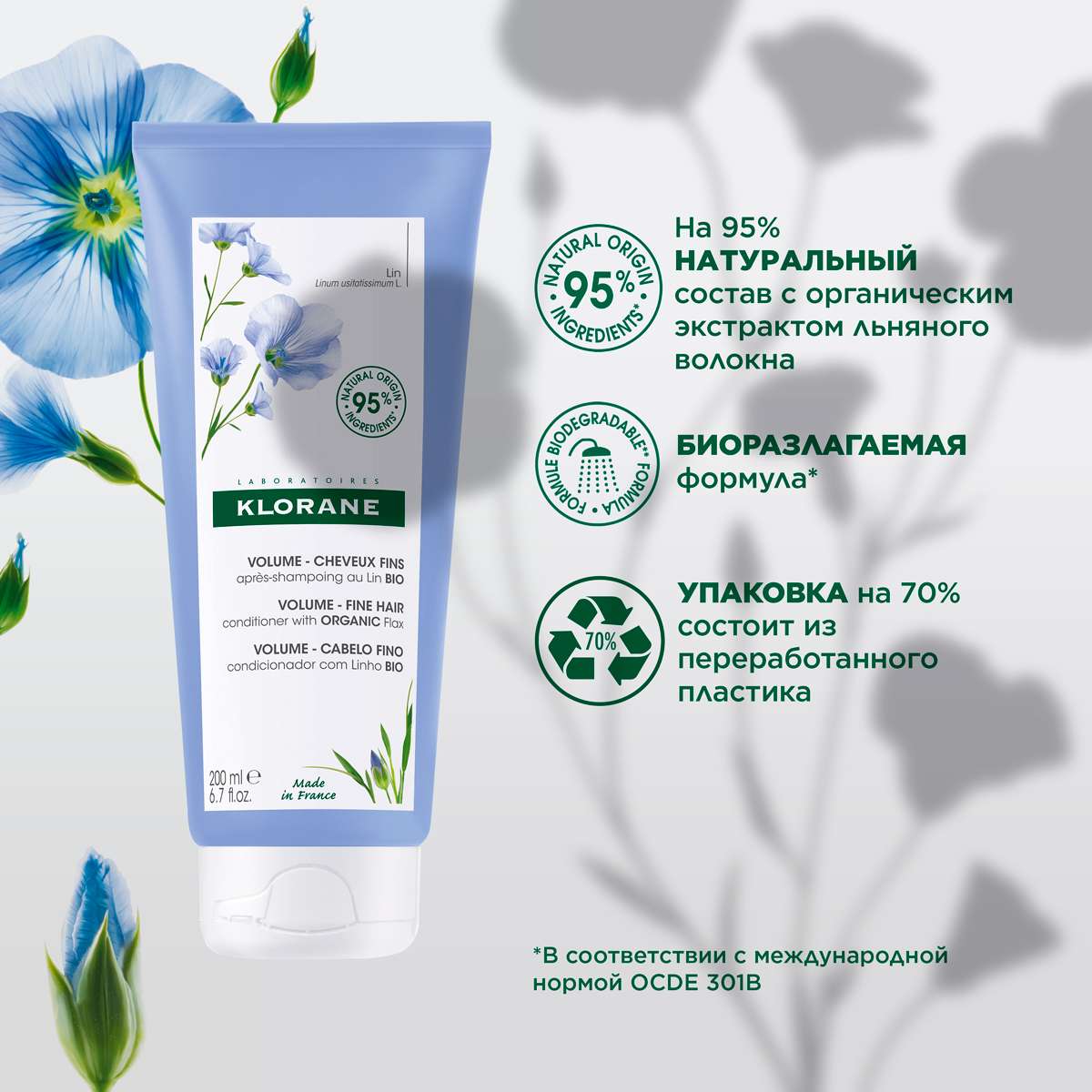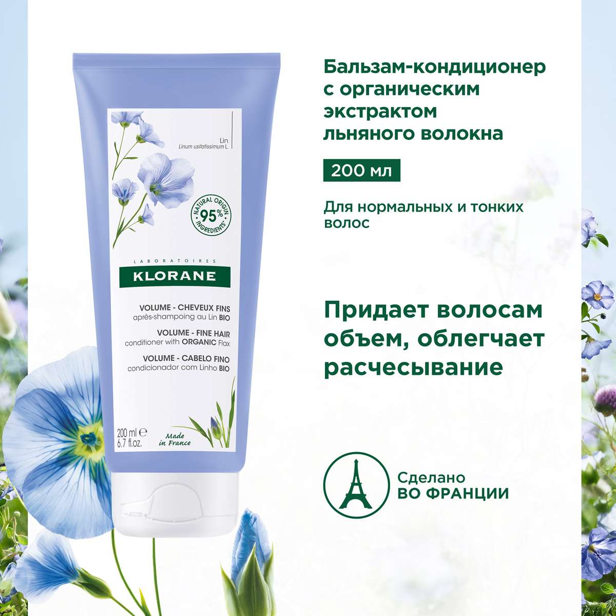 Клоран Бальзам-ополаскиватель с волокнами льна 200мл