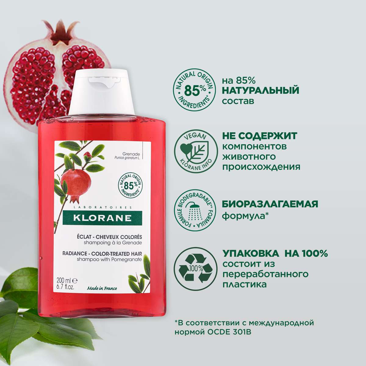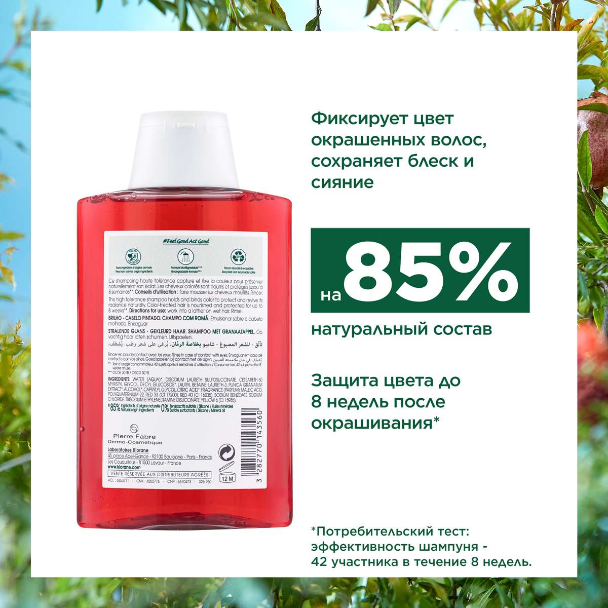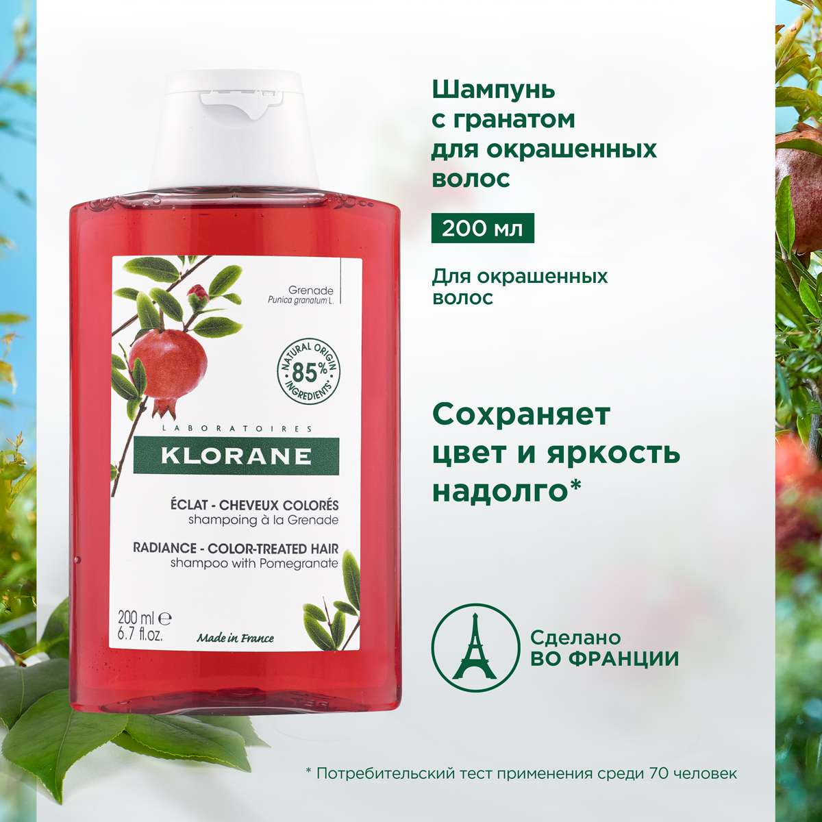 Клоран (Klorane) Шампунь Сублиматор для окрашенных волос с экстрактом граната 200 мл