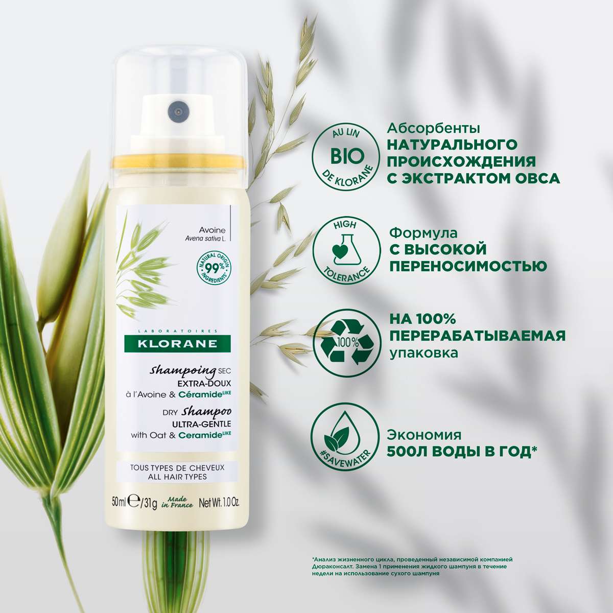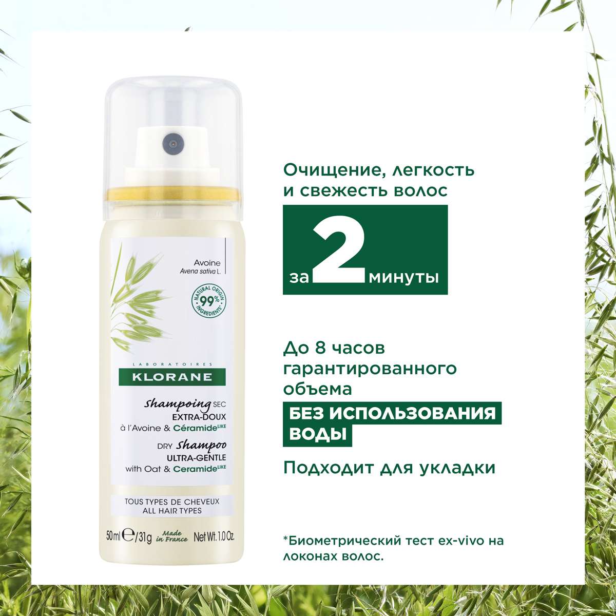 Клоран Сухой шампунь с Овсом (в спрее) 50мл