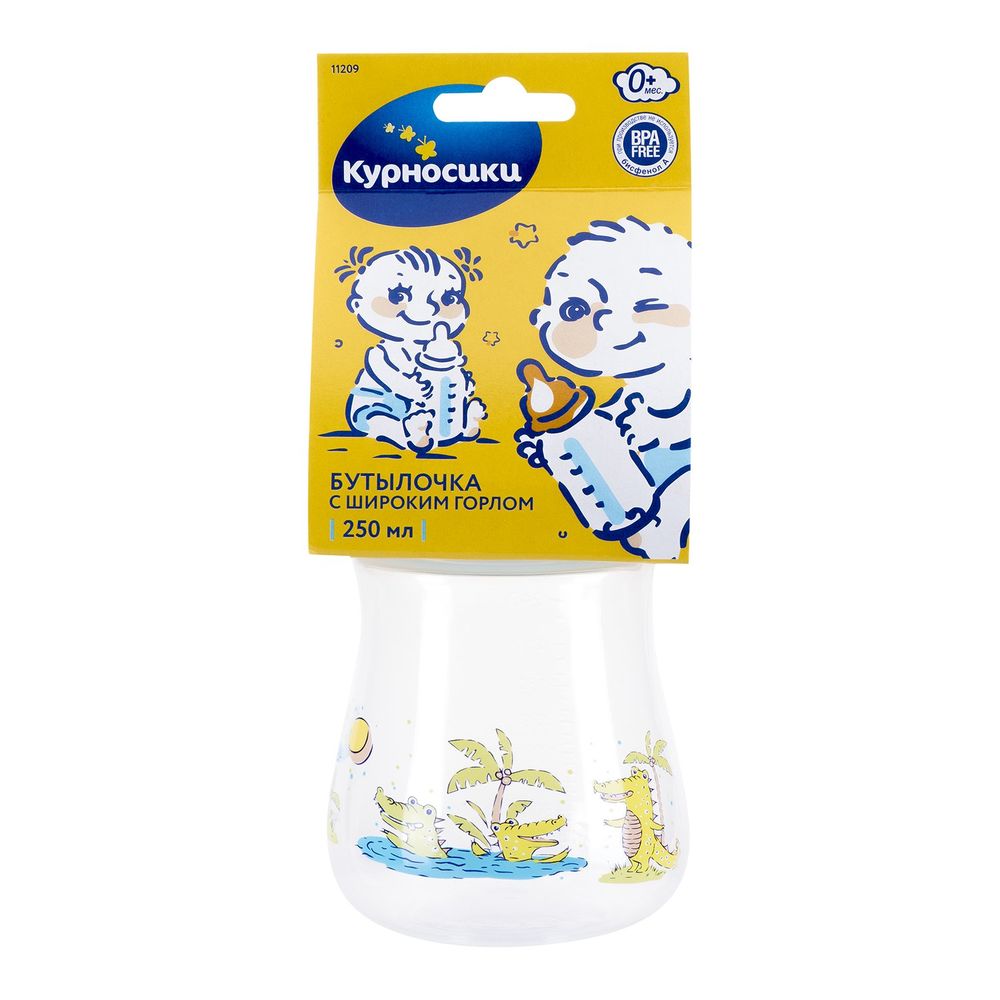 - Курносики бутылочка полипропиленовая с широким горлом с силиконовой соской 0+ 250мл 11209