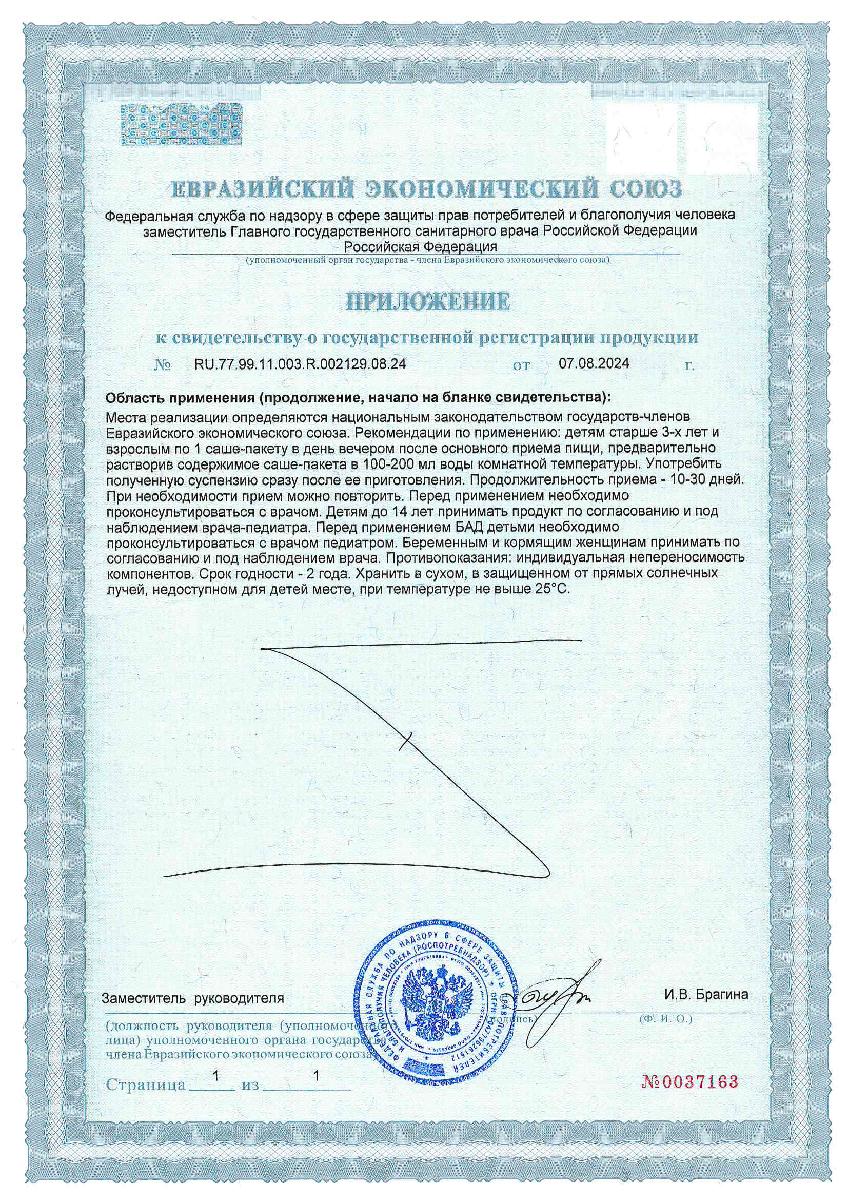 Детям старше 3-х лет и взрослым по 1 саше в день на ночь (желательно на опустошенный желудок), предварительно растворив содержимое саше в 100-200 мл воды комнатной температуры. Выпить полученную суспензию сразу после ее приготовления. Продолжительность приема - 10-30 дней.При необходимости курс приема можно повторить.