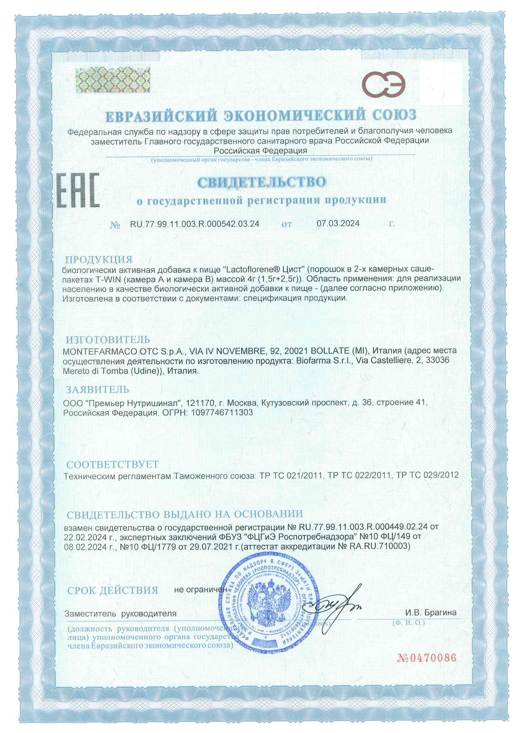 Действующие компоненты 1 двойной пакетик T-WINLactobacillus paracasei LC11 1х109 КОЕ*