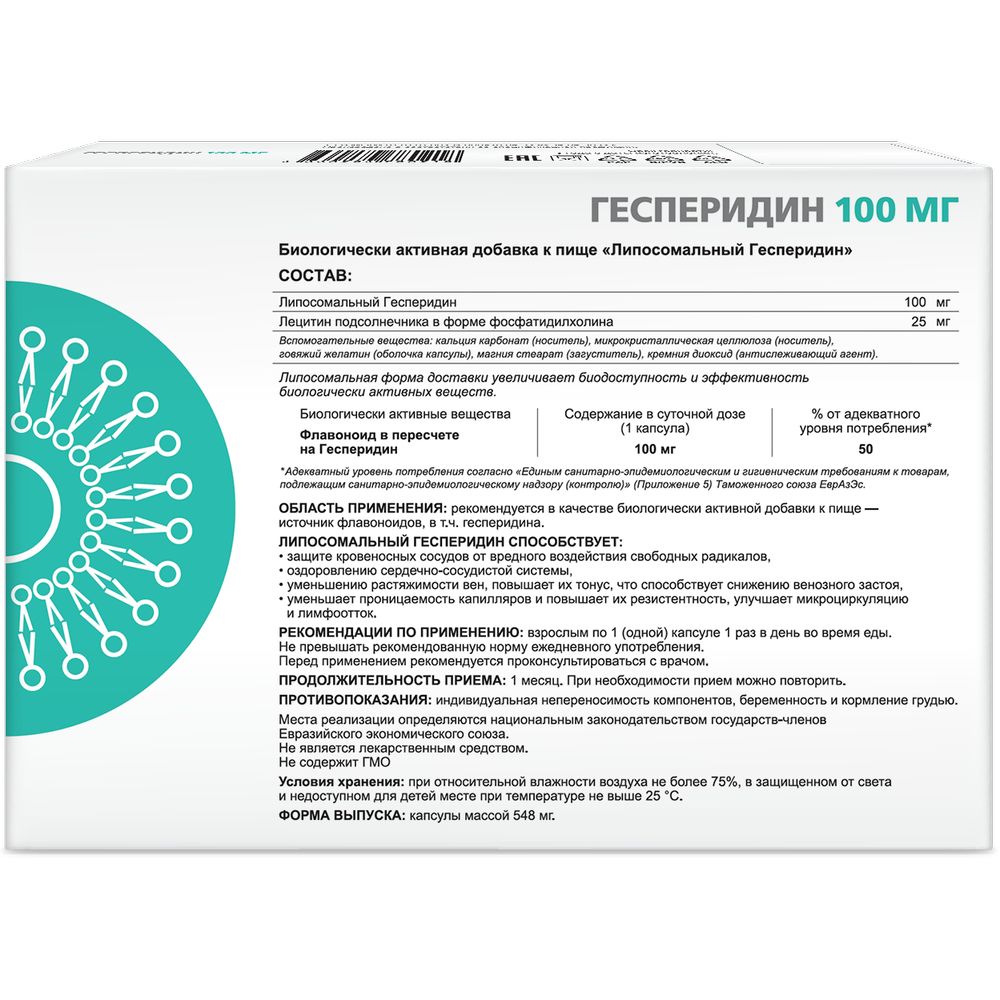 Активные вещества:Липосомальный гесперидин – 100 мг; Лецитин подсолнечника в форме фосфатидилхолина – 25 мг.