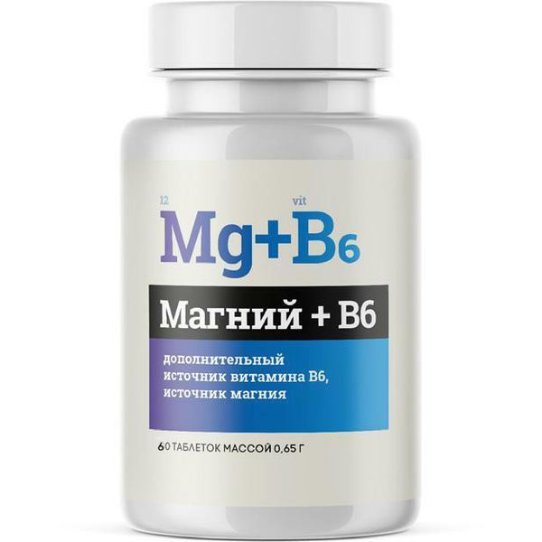 Активные вещества:магния цитрат, антислеживающий агент микрокристаллическая целлюлоза, лактоза, антислеживающий агент кальция стеарат, пиридоксин гидрохлорид (витамин В6).