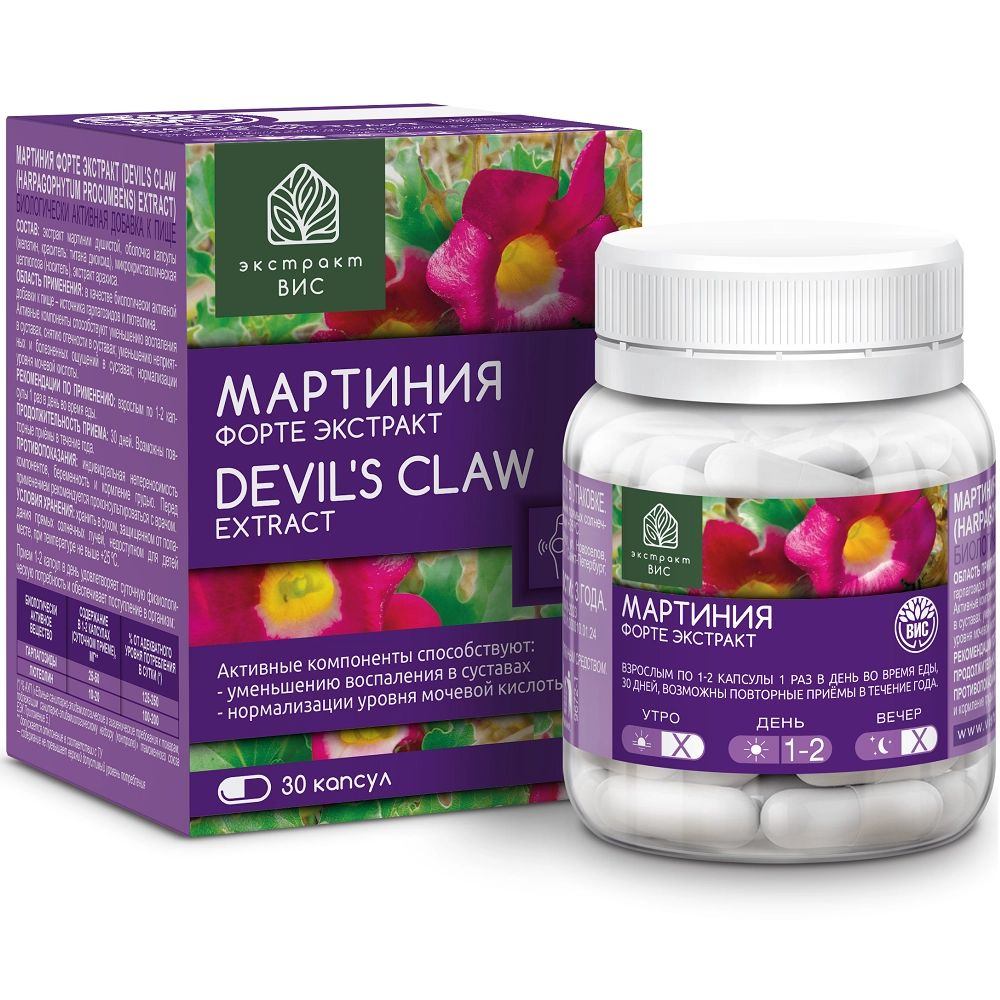МАРТИНИЯ ФОРТЕ ЭКСТРАКТ - Биологически активная добавка (БАД) к пище - активные компоненты способствуют: уменьшению воспаления в суставах и нормализации уровня мочевой кислоты.