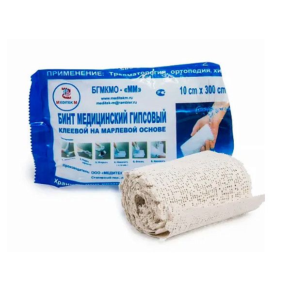 - Медитек Бинт гипсовый клеевой на марлевой основе 10х300см