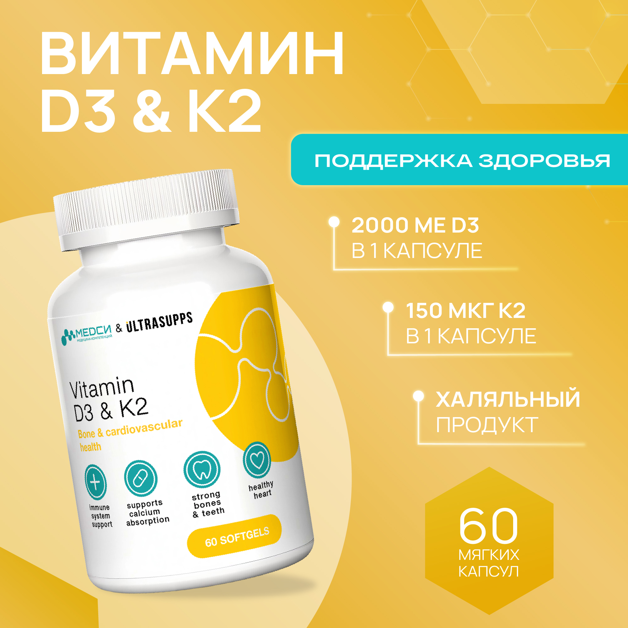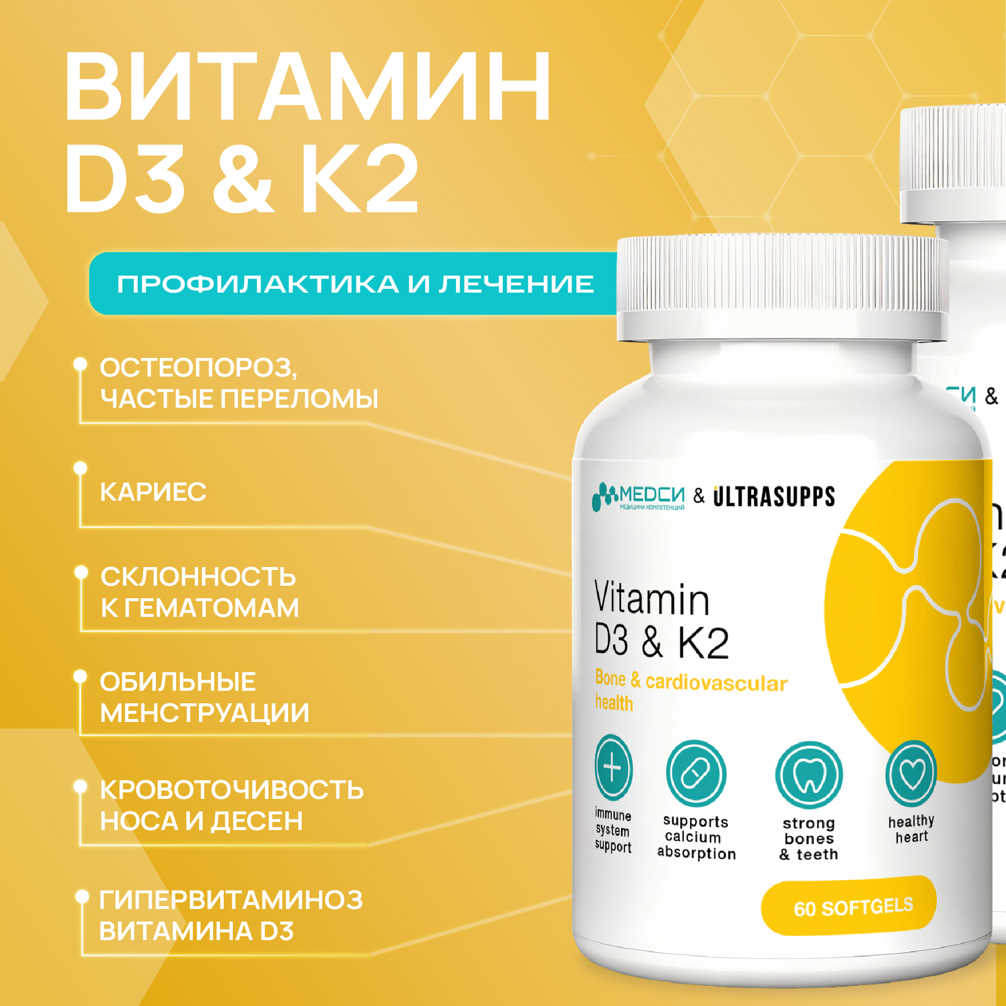 МЕДСИ Ультрасаппс Витамин Д3 и К2 60 капсул софтгель