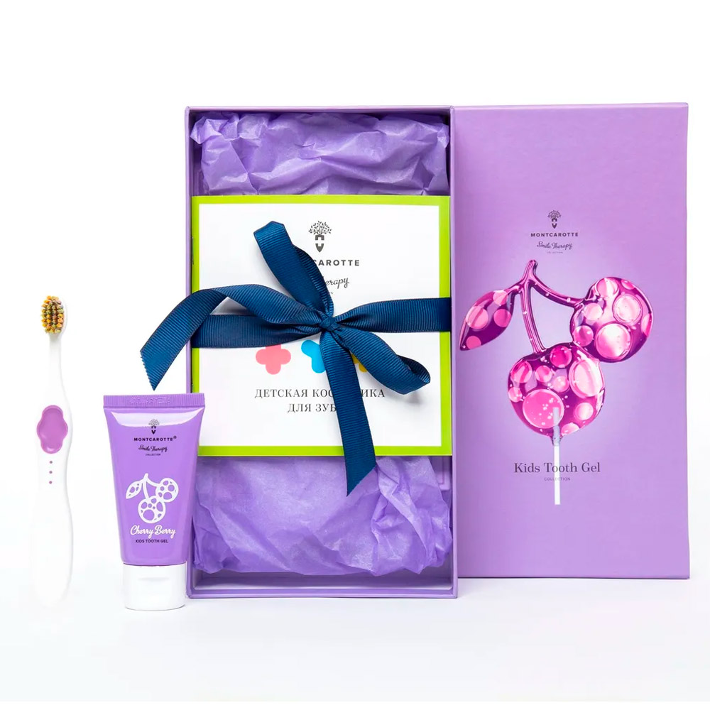 - 5 миниатюр (по 5мл) детского зубного геля: "Зеленое Яблоко", "Розовая Груша", "Сладкий Банан" "Ягодка Вишня", "Нейтральный" в индивидуальной упаковке - 25 мл.