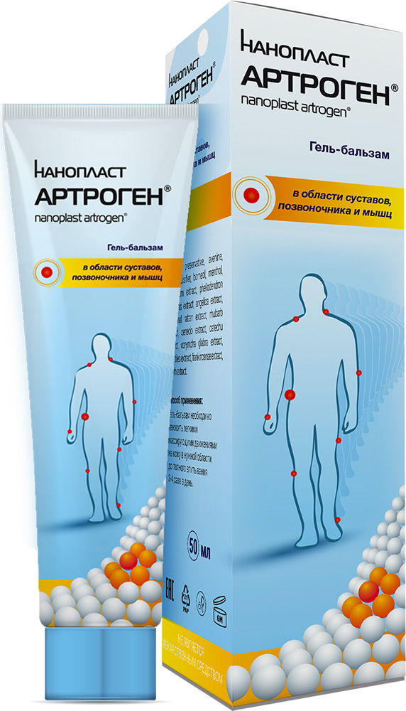 Биоактивные компоненты, входящие в состав Нанопласт АРТРОГЕН, обладают антисептическим, противовоспалительным, спазмолитическим, анальгетическим и противоотечными действиями; улучшают микроциркуляцию, питание и лимфоток в области суставов, позвоночника, мышц и связок; способствуют восстановлению функции опорно-двигательного аппарата, уменьшают утреннюю скованность суставов, повышая их подвижность. Способствуют более быстрому рассасыванию кровоподтеков и гематом при травмах, ушибах, растяжениях мышц и связок. Обладают регенеративным и хондропротективным свойствами.