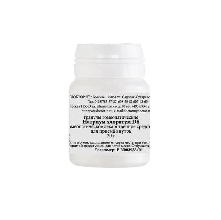 Натриум Хлоратум D6 Гомеопатический монокомпонентный препарат гранулы гомеопатические 20г