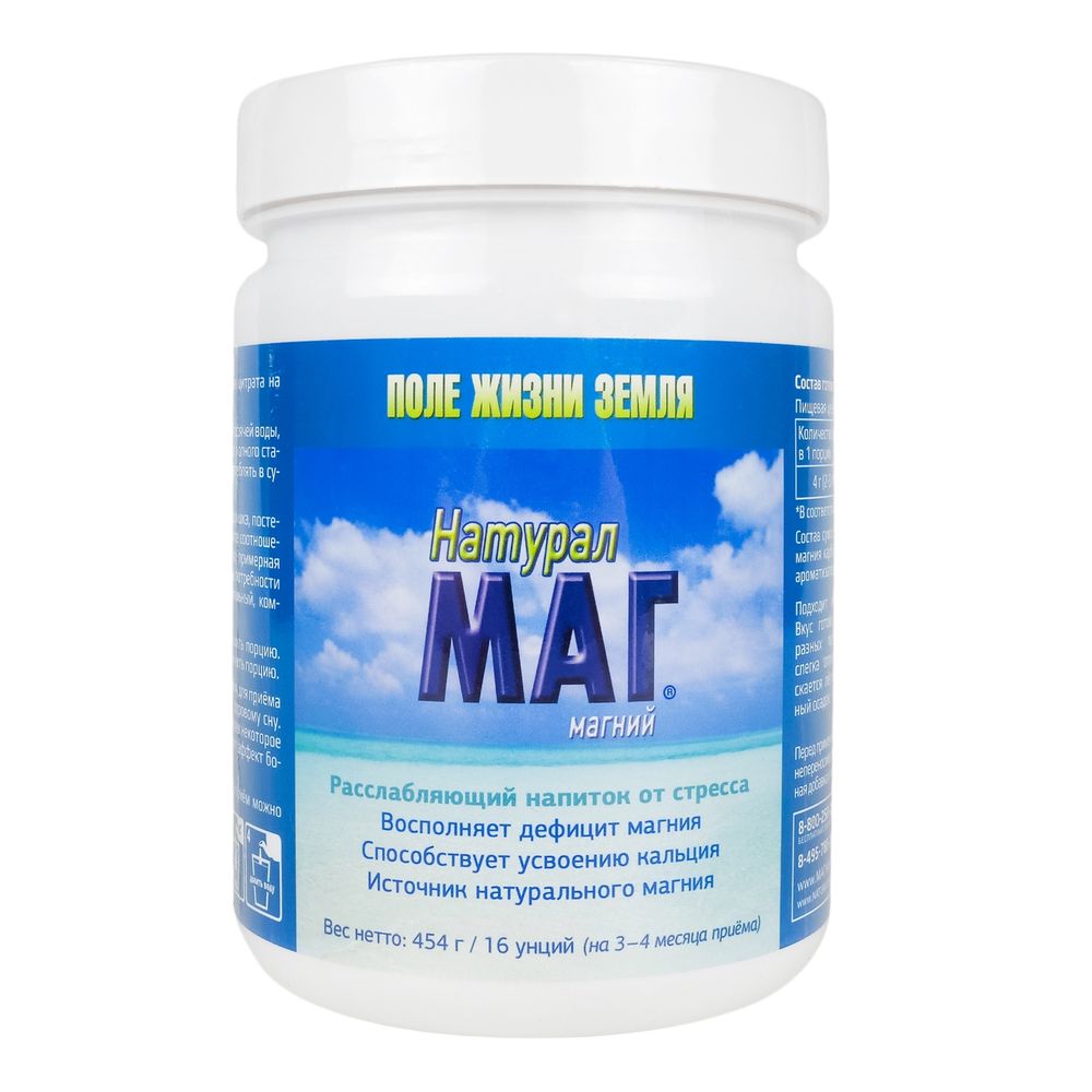 - Улучшает общее самочувствие. Баночку 114 г (4 унции) можно приобретать тем людям, которые хотят попробовать магний Натурал Маг, проверить его на совместимость с организмом.