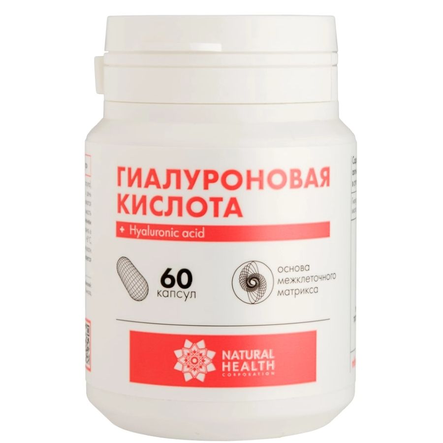 HYALURONIC ACID - натуральная гиалуроновая кислота Natural Health, представленная в виде капсул из кукурузной муки. HYALURONIC ACID обеспечивает дополнительное поступление гиалуроновой кислоты, тонизирует все ткани организма и запускает процесс омоложения изнутри.