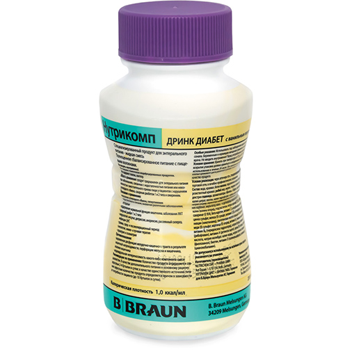Нутрикомп Дринк Диабет— это полноценная специализированная смесь (1 ккал/мл) с пищевыми волокнами и углеводами крахмала, без глютена, без лактозы.