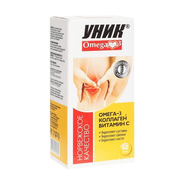 УНИК Омега-3 и Коллаген, Витамин С– это комбинация Омега-3, гидролизованного коллагена и Витамина С, оказывает комплексное противовоспалительное действие.