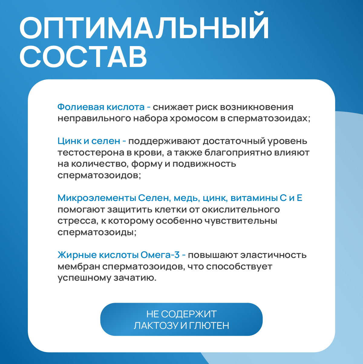 Рекомендуется начать прием витаминного комплекса Orthomol Fertil plus за 3 месяца до планируемой беременности, т.к. сперматогенез (образование и созревание сперматозоидов) происходит в семенных каналах яичек и длится, в общем и целом, от 60 до 64 дней.