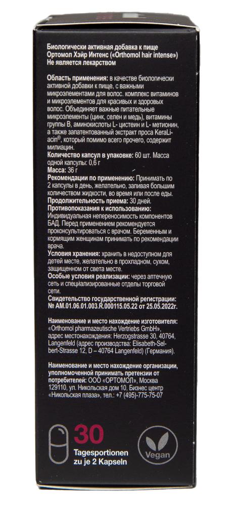 Наиболее актуален прием Orthomol Hair Intense в зимне-весенний период, когда организм испытывает нехватку витаминов. Одна дневная порция состоит из двух капсул, принимаемых один раз в день. Не является лекарственным средством.