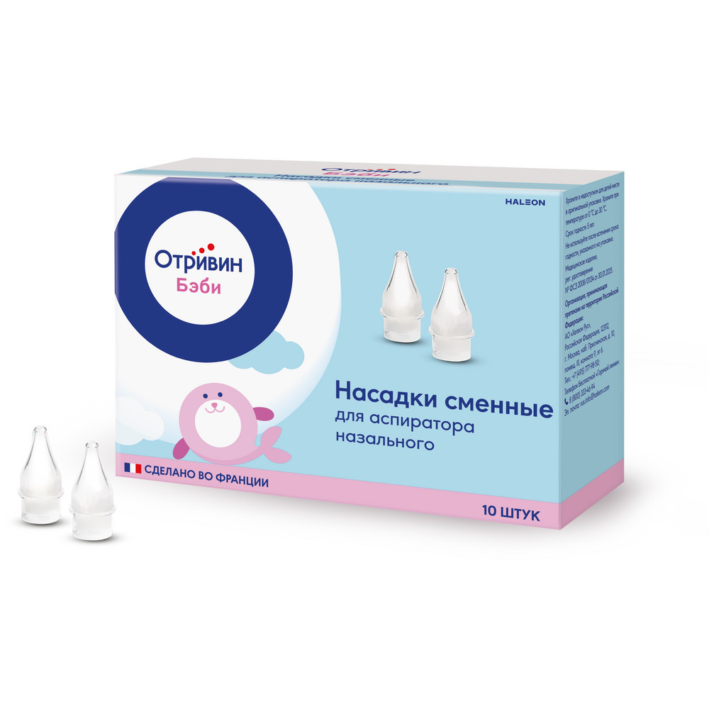 Насадки сменные для аспиратора назального Отривин Бэби для удаления слизистых выделений из носа при насморке и ринитах у детей.Рекомендации по применению