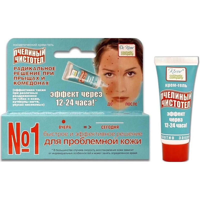 Крем-гель Пчелиный Чистотел - одно из самых действенных средств для очищения кожи от прыщей, комедонов, акне, угрей. Эффекта от крема не надо ждать месяц или неделю - эффект наступает в течение 12-24 часов! Прыщи (акне) рассасываются, воспаление прекращается, исчезает раздражение кожи (в 94,8%).