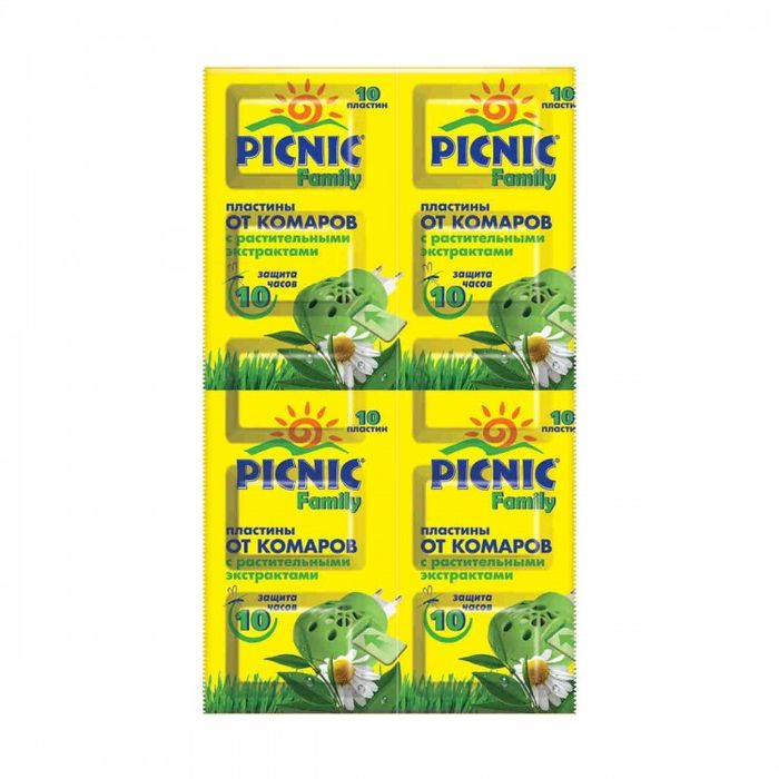 PICNIC фэмили пластины от комаров содержат натуральные экстракты, не имеет запаха. Одна пластина действует до 10 часов. Подходит для защиты всей семьи.