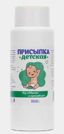 Присыпка детская — оказывает адсорбирующее, подсушивающее и вяжущее действие (профилактика опрелостей).
