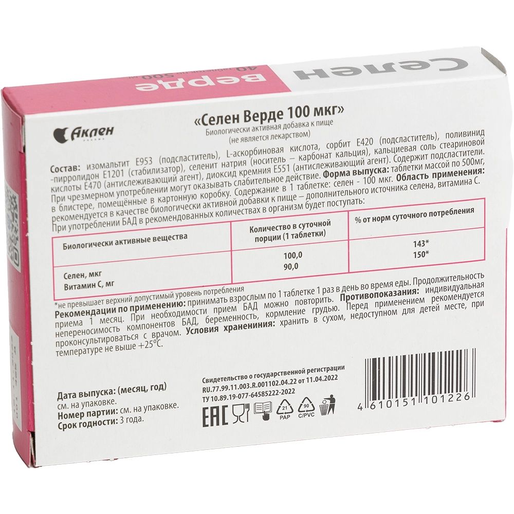 БАД Селен Верде 100мкг - необходимое организму средство для иммунитета, репродуктивной системы и обмена веществ.