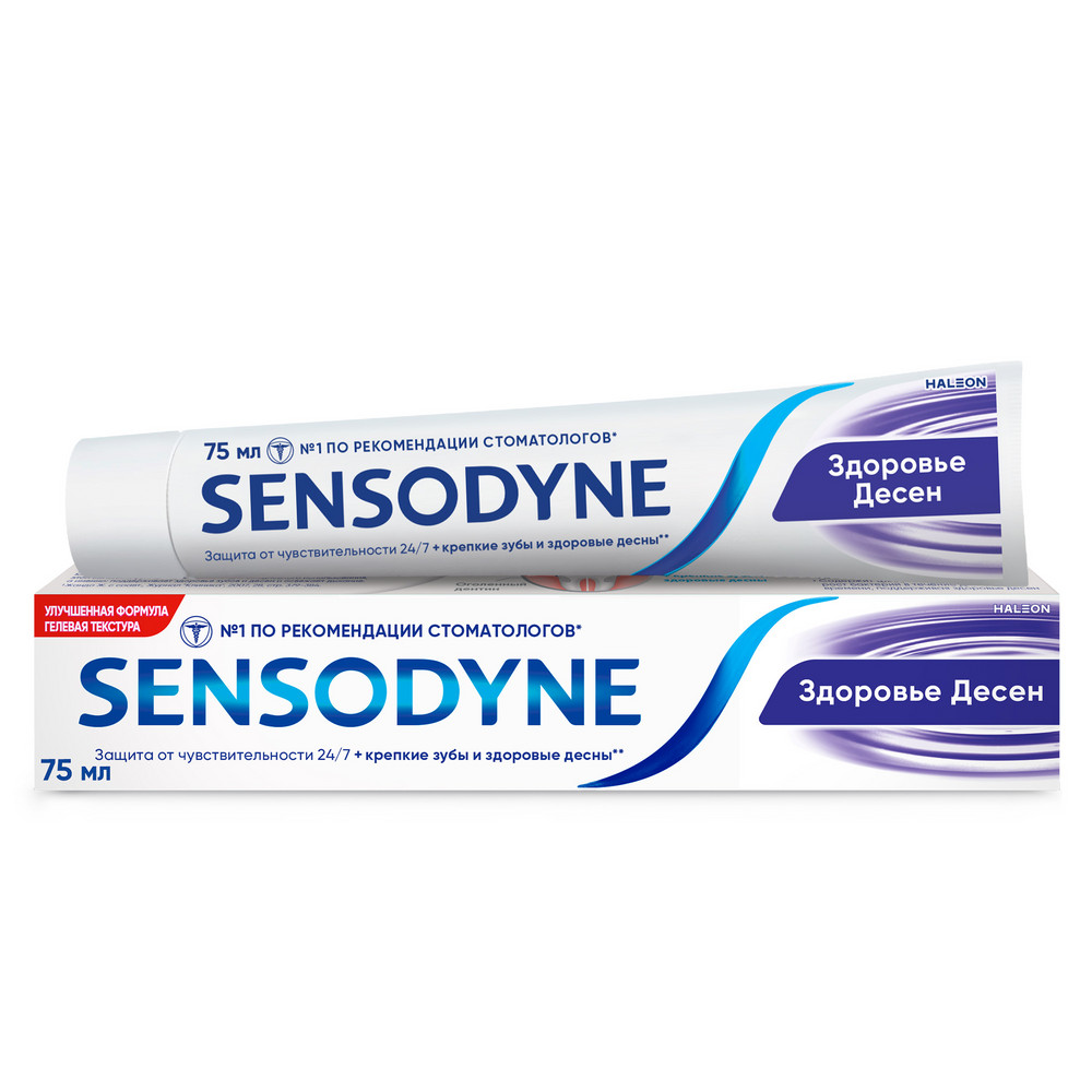 Зубная паста Sensodyne Здоровье десен обеспечивает постоянную (24/7) защиту от повышенной чувствительности зубов. Sensodyne содержит фтор для укрепления эмали и защиты от кариеса. Содержит антибактериальный комплекс, который при чистке 2 раза в день удаляет зубной налет над линией десны и поддерживает здоровье десен.