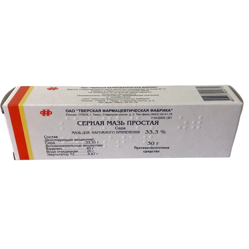 Серная Мазь простая мазь для наружного применения 30г Тверская ФФ