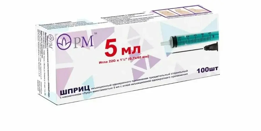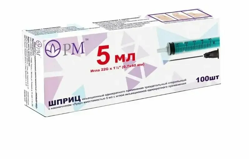 Шприц 5 мл с иглой трехдетальный 22G (0,7x40 мм) - это медицинский инструмент, предназначенный для введения лекарственных препаратов, внутримышечных, подкожных и внутривенных инъекций. Шприц оснащен съёмной иглой, которая имеет диаметр 22G (0,7 мм) и длину 40 мм. Это обеспечивает легкое проникновение в кожу и мягкие ткани. Шприц с иглой 22G позволяет точно дозировать лекарственные средства, снижает болевые ощущения, минимизирует возможность развития инфекционных осложнений и обеспечивает быстрый и эффективный терапевтический эффект. Все компоненты изготовлены из высококачественных материалов, что гарантирует их безопасность и долговечность.
