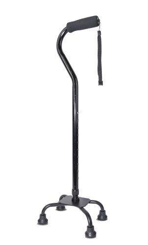 Большая площадь опоры с четырьмя ножками помогает человеку с нарушениями координации движения ходить и стоять, опираясь на нее.