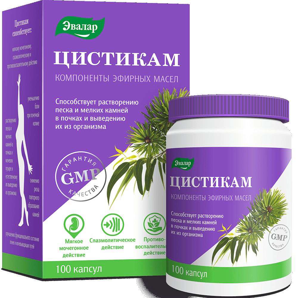 Кишечнорастворимые капсулы Цистикам представляют собой комбинацию компонентов натуральных эфирных масел (пинен, камфен, цинеол, фенхон, борнеол, анетол) для бережной, естественной помощи и поддержки здоровой функции почек, и витамин Е для улучшения микроциркуляции и метаболизма тканей органов малого таза. Эти соединения мягко, бережно и эффективно поддерживают здоровую функцию почек, дают шанс избежать оперативных вмешательств, помогая выводить камни естественным путем.