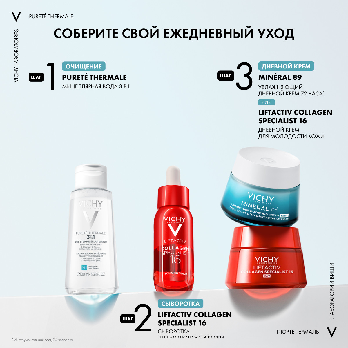 Смочите средством Vichy PURETE THERMALE ватный диск и аккуратно очистите кожу лица и глаз. Используйте утром и вечером. Не требует смывания.Наличие и цена товара в аптеках
