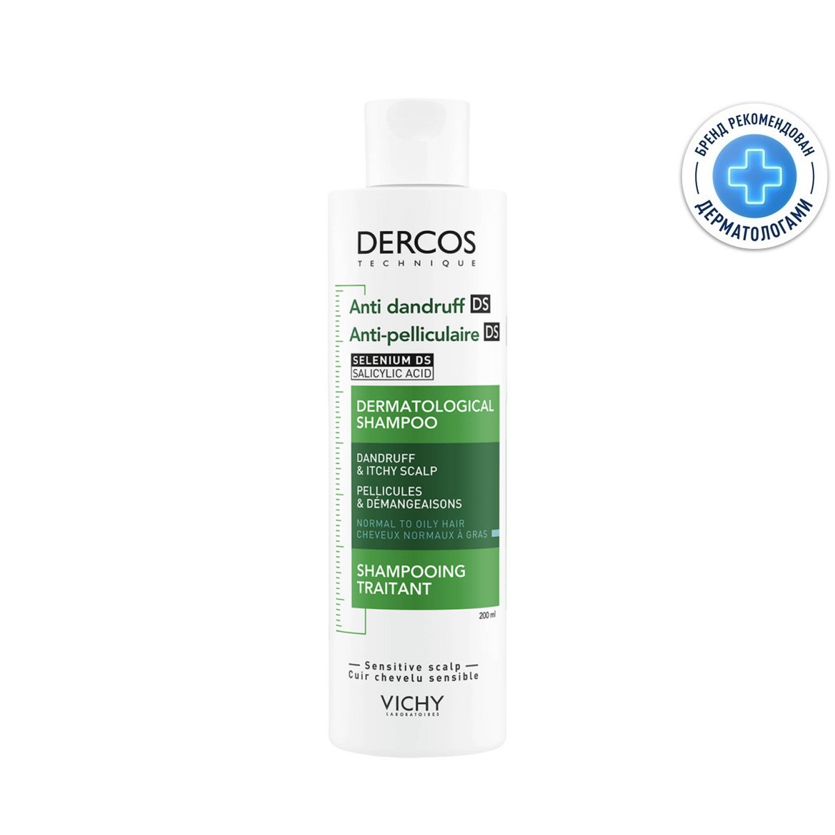 Vichy (Виши) Деркос Интенсивный шампунь-уход против перхоти для нормальных и жирных волос 200 мл