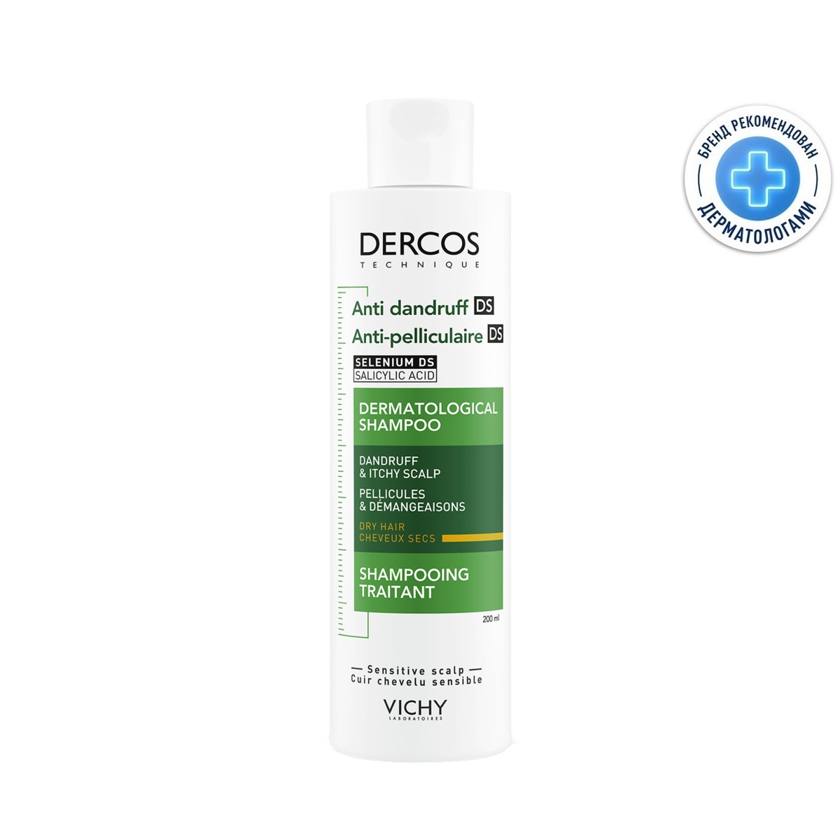 Vichy (Виши) Деркос Шампунь-уход интенсивный против перхоти для сухих волос и кожи головы склонной к зуду 200 мл