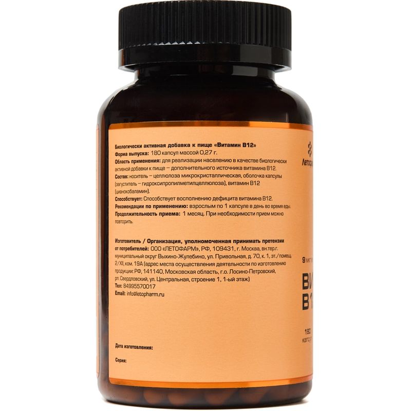 Витамин В12 капсулы 270мг N180 ЛетоФарм