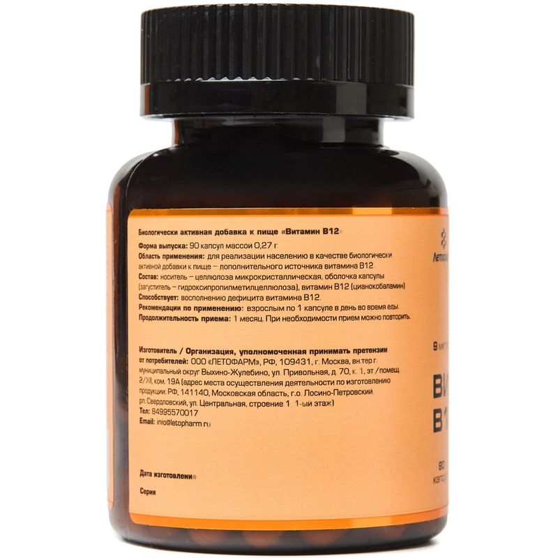 Витамин В12 капсулы 270мг N90 ЛетоФарм