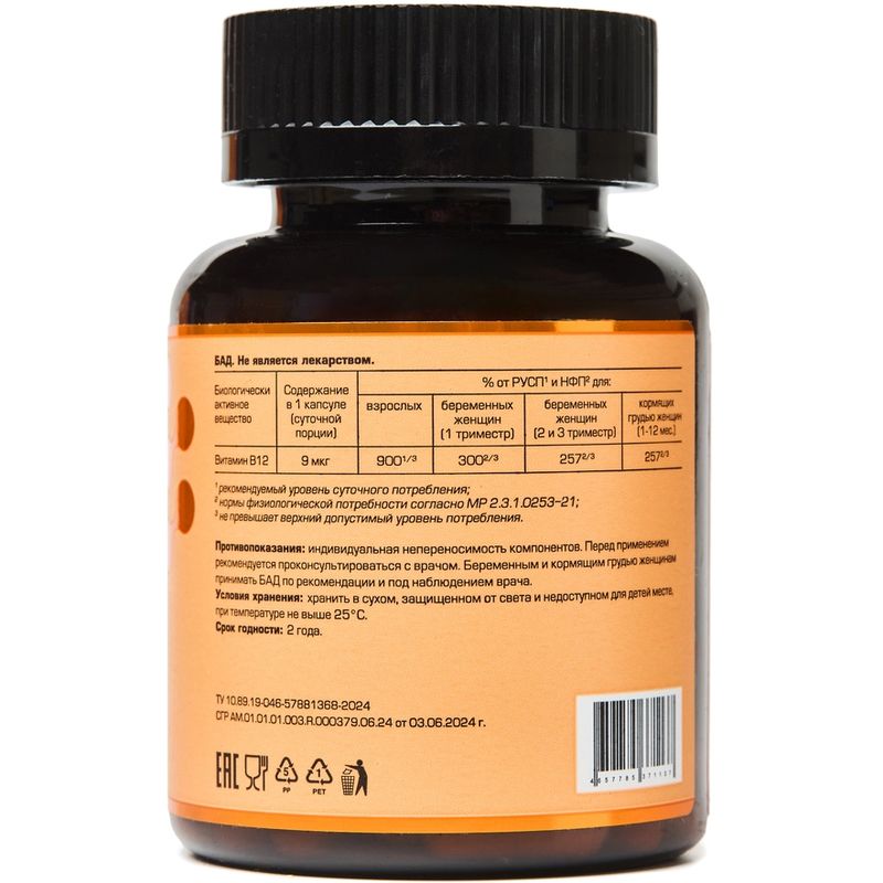 Витамин B12 (кобаламин) играет важную роль в образовании эритроцитов, клеточном метаболизме, работе нервной системы и производстве ДНК - молекул, содержащихся в клетках и несущих генетическую информацию.