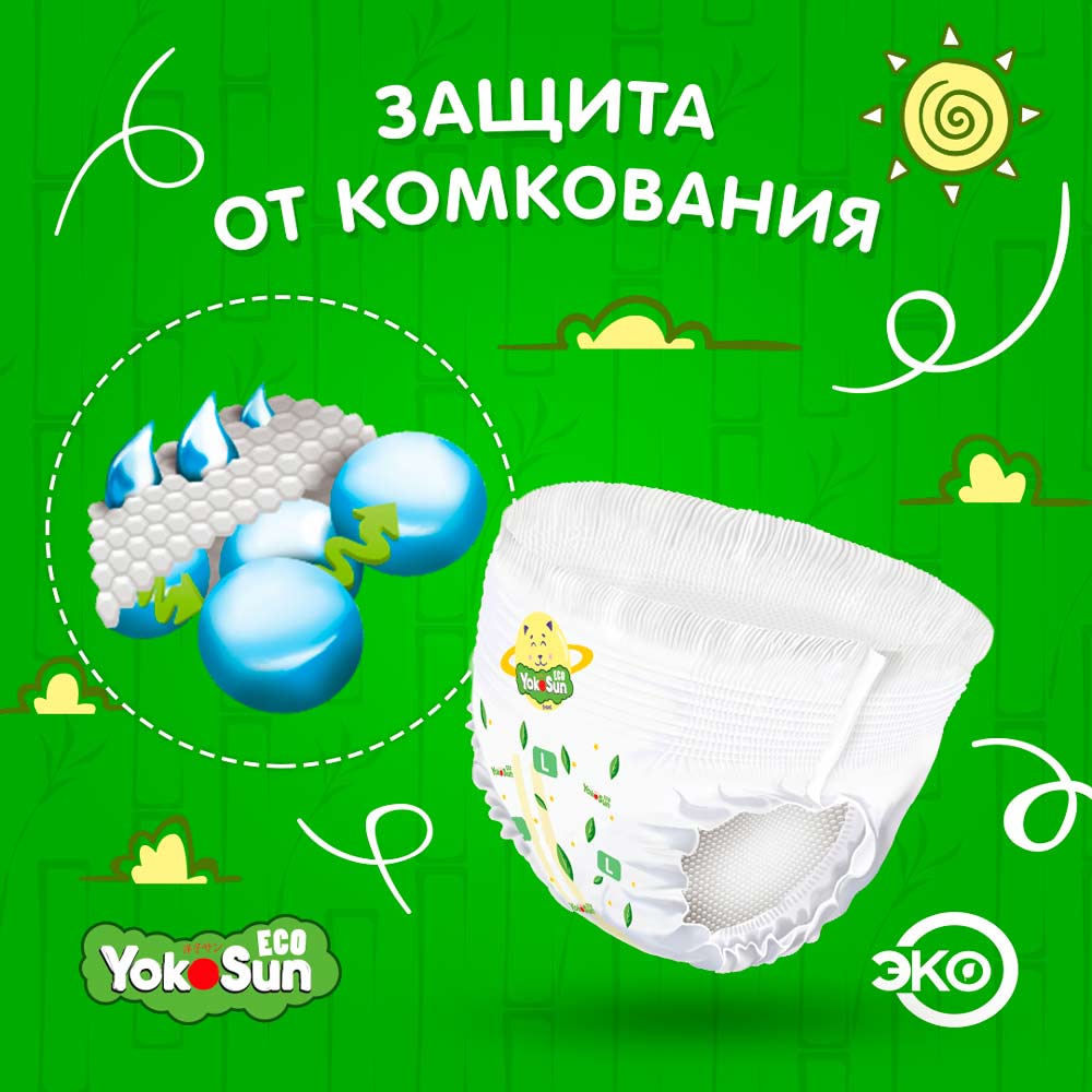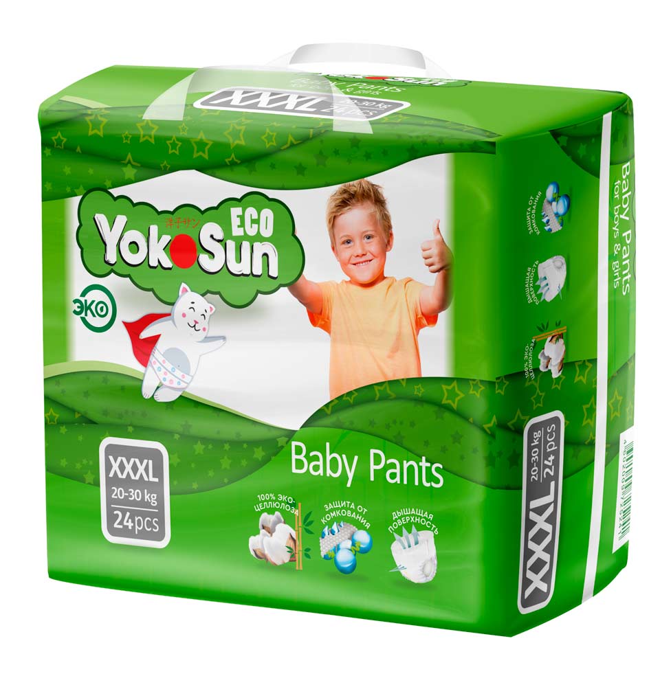 Трусики-подгузники YokoSun Eco – это новая серия трусиков-подгузников торговой марки YokoSun. Отвечает всем требованиям современных мам, имеет знак качества экологичности «Эко» и рекомендована дерматологами.